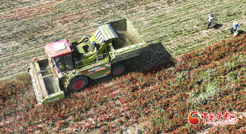 近日,臨澤縣平川鎮(zhèn)種植的3900多畝朝天椒進入采收期,朝天椒采收機馬達轟鳴,在田地里來回穿梭,快速采收。種植農(nóng)戶們把采收的朝天椒運往晾曬場,經(jīng)過分揀、晾曬、包裝后發(fā)往山東、河南、安徽、重慶、貴州等地訂單客戶手中。