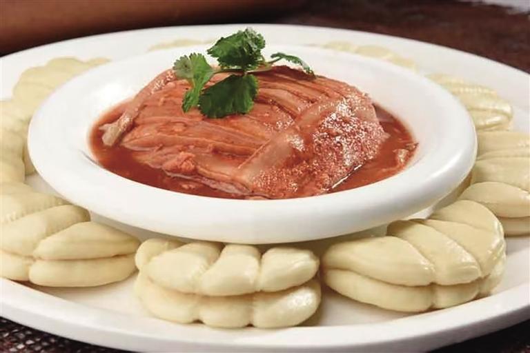“黃河大鯉魚、蘭州糟肉、麻辣肉、老蘭州燴菜這些都是隴菜中的必點菜式!”董巖向記者介紹了店里的招牌菜:黃河宏豐鯉魚王,魚肉質(zhì)鮮嫩細膩、營養(yǎng)豐富,在隴菜傳統(tǒng)烹飪技法中,紅燒黃河鯉魚堪稱經(jīng)典做法,搭配廚師精致的排盤,色澤紅亮的魚身與青蔥翠綠相互映襯,香氣撲鼻,令人垂涎欲滴。蘭州糟肉在隴菜中是一道極具特色的傳統(tǒng)名菜,每逢佳節(jié),它更是成為蘭州人家餐桌上必不可少的一道佳肴,承載著濃濃的節(jié)日氛圍和家的味道。精選肥瘦相間的五花肉,經(jīng)過刀工、糟鹵腌制、放入蒸鍋中蒸熟等一系列操作,肉質(zhì)變得軟爛,肥而不膩,糟香四溢。當入口品嘗時,那濃郁的糟香味瞬間在口中散開,與五花肉的醇厚口感完美搭配,相得益彰,讓人回味無窮。
