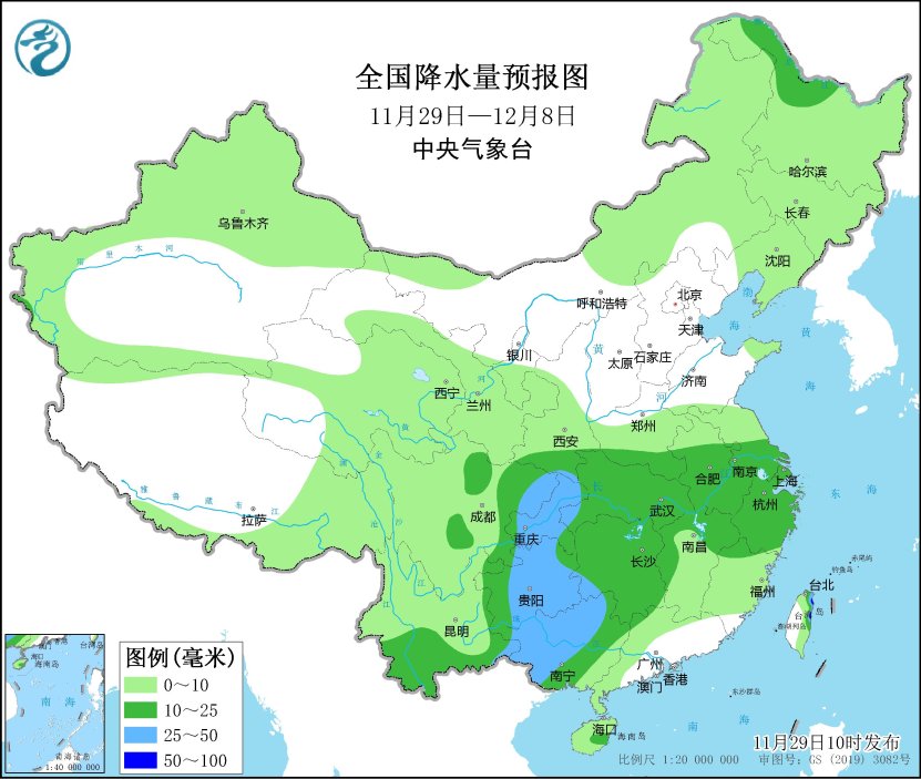 未來(lái)10天(11月29日-12月8日),東北地區(qū)中北部、內(nèi)蒙古東北部等地部分地區(qū)累計(jì)降水量有8~15毫米;西南地區(qū)東部和南部、江漢、江淮、江南西部和北部、廣西西部及臺(tái)灣島等地部分地區(qū)有10~20毫米,局地30~60毫米;云貴高原、內(nèi)蒙古東北部、東北地區(qū)等地部分地區(qū)累計(jì)降水量較常年同期偏多1~3倍,我國(guó)其余大部地區(qū)降水偏少。
