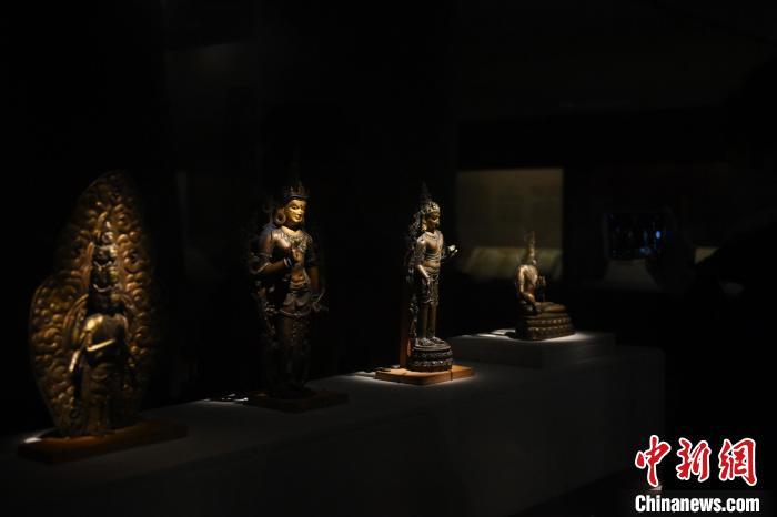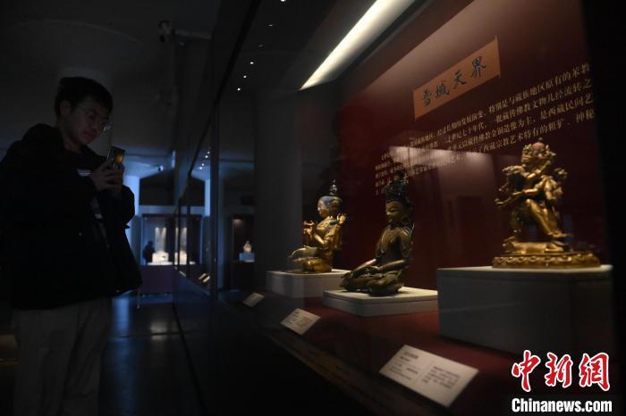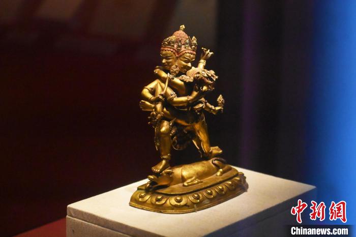 11月28日,甘肅省敦煌市,敦煌研究院敦煌石窟文物保護研究陳列中心《披沙揀金——敦煌研究院館藏文物擷英展》中的勝樂金剛像。該展由敦煌研究院主辦,2024年下半年煥新布展,展出了不同類型館藏文物,通過這些文物蘊含的豐富歷史信息,展現(xiàn)了敦煌文化的多元與包容,勾勒不同文明偕行共進的歷史脈絡(luò)。中新社記者 李亞龍 攝