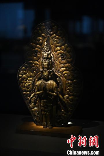 11月28日,甘肅省敦煌市,敦煌研究院敦煌石窟文物保護研究陳列中心《披沙揀金——敦煌研究院館藏文物擷英展》中的十一面觀音像。該展由敦煌研究院主辦,2024年下半年煥新布展,展出了不同類型館藏文物,通過這些文物蘊含的豐富歷史信息,展現(xiàn)了敦煌文化的多元與包容,勾勒不同文明偕行共進的歷史脈絡(luò)。中新社記者 李亞龍 攝