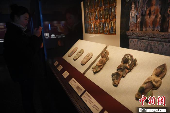 11月28日,甘肅省敦煌市,敦煌研究院敦煌石窟文物保護研究陳列中心,游客拍攝《披沙揀金——敦煌研究院館藏文物擷英展》。該展由敦煌研究院主辦,2024年下半年煥新布展,展出了不同類型館藏文物,通過這些文物蘊含的豐富歷史信息,展現(xiàn)了敦煌文化的多元與包容,勾勒不同文明偕行共進的歷史脈絡(luò)。中新社記者 李亞龍 攝