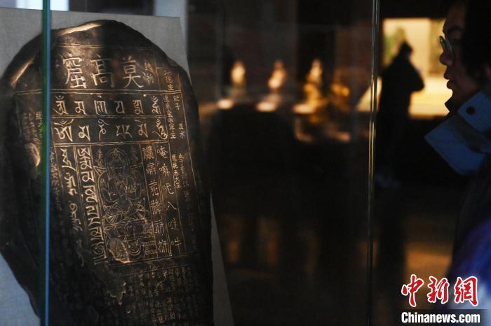 11月28日,甘肅省敦煌市,敦煌研究院敦煌石窟文物保護研究陳列中心,游人參觀《披沙揀金——敦煌研究院館藏文物擷英展》中的碑刻。該展由敦煌研究院主辦,2024年下半年煥新布展,展出了不同類型館藏文物,通過這些文物蘊含的豐富歷史信息,展現(xiàn)了敦煌文化的多元與包容,勾勒不同文明偕行共進的歷史脈絡(luò)。中新社記者 李亞龍 攝