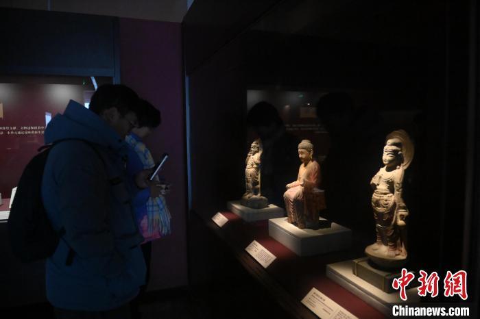 11月28日,甘肅省敦煌市,敦煌研究院敦煌石窟文物保護研究陳列中心,游客參觀《披沙揀金——敦煌研究院館藏文物擷英展》中的禪定佛石雕像。該展由敦煌研究院主辦,2024年下半年煥新布展,展出了不同類型館藏文物,通過這些文物蘊含的豐富歷史信息,展現(xiàn)了敦煌文化的多元與包容,勾勒不同文明偕行共進的歷史脈絡(luò)。中新社記者 李亞龍 攝