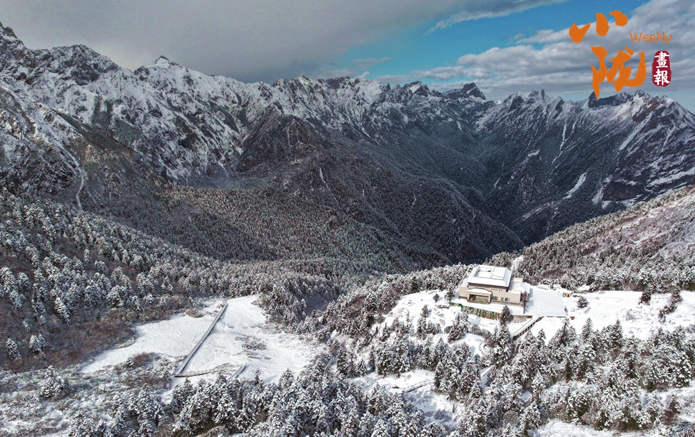 積雪如同軟綿綿的地毯鋪滿了整個官鵝溝,陽光透過云層照射在這片被雪覆蓋的世界,閃爍著溫柔的光芒。