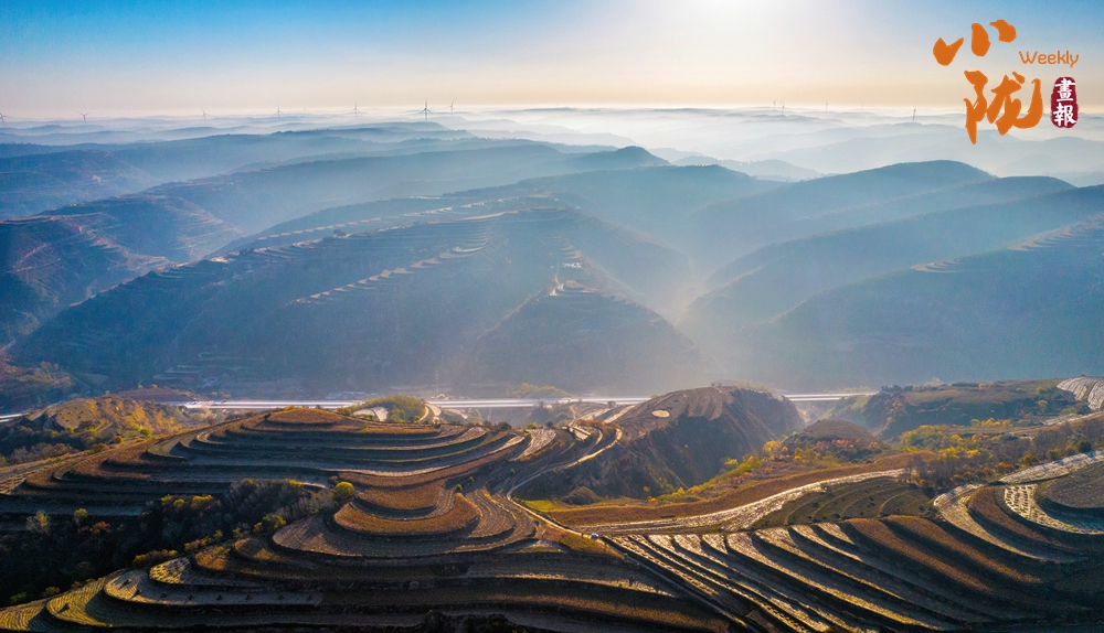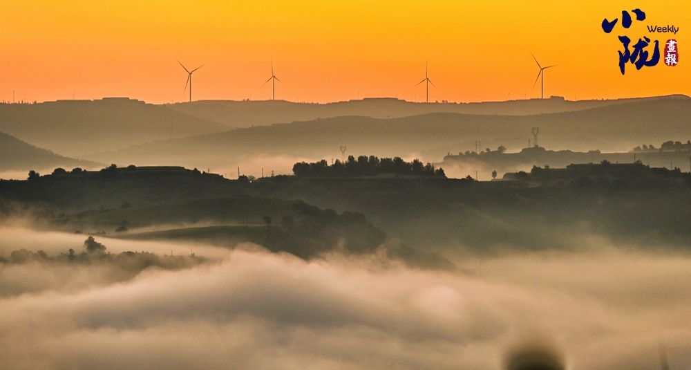 云霧如海浪般向四周漫延,呈現(xiàn)出別樣的霧海景觀,聳立在山川梁峁間的風(fēng)力發(fā)電機隨風(fēng)律動,成為當?shù)匾坏廓毺氐娘L(fēng)景。
