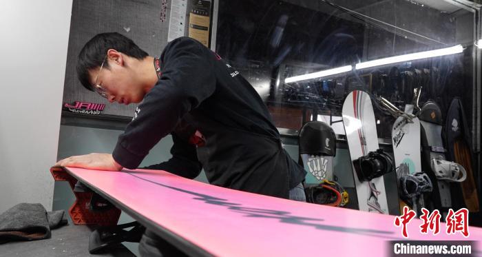 雪板維護(hù)師齊宇峰正在維護(hù)雪板。(受訪者供圖)