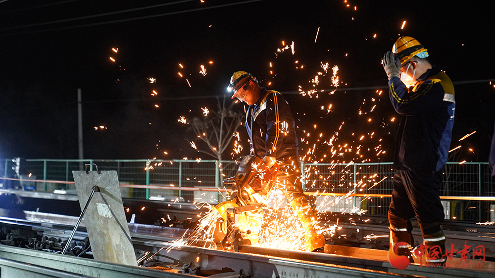 4月13日21時(shí)30分,位于河西走廊的蘭新鐵路截河壩站人頭攢動(dòng)、燈火通明,蘭州鐵路局武威工務(wù)段組織80余名干部職工對(duì)站內(nèi)3號(hào)道岔軌件進(jìn)行更換升級(jí)。
