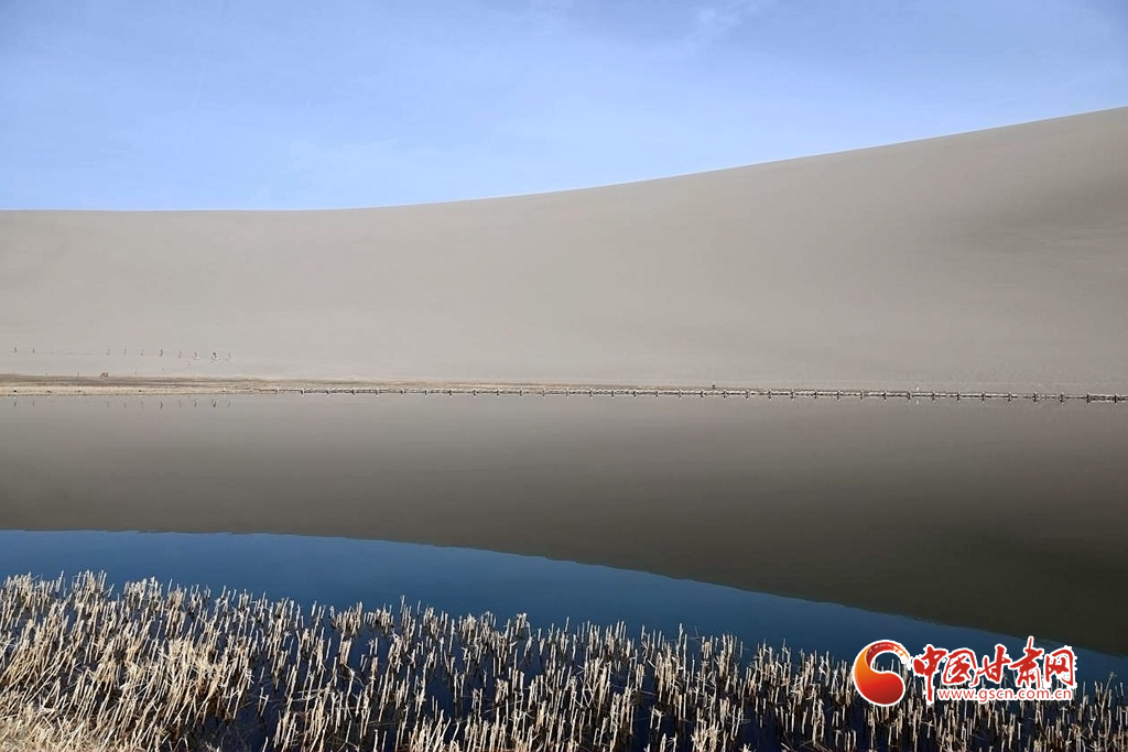 3月8日,隨著氣溫回暖,絲路明珠敦煌迎來(lái)早春勝景。鳴沙山環(huán)抱中的月牙泉冰雪消融,一泓碧水宛如翡翠鑲嵌在大漠之中,呈現(xiàn)出"沙水共生"的奇觀。