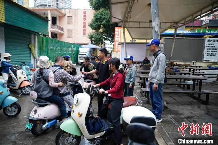 3月16日,云南省紅河州河口縣街頭,數(shù)位越南游客騎著租來(lái)的電動(dòng)車游玩。中新社記者  劉冉陽(yáng)  攝