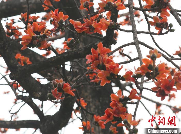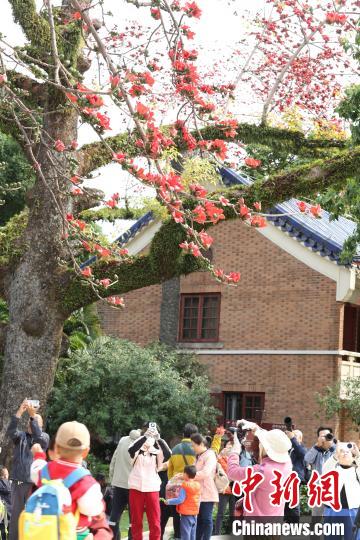 眼下,一株被譽(yù)為“中國(guó)最美木棉”的超350歲木棉樹(shù)以及周邊幾株木棉樹(shù)進(jìn)入盛花期,璀璨的紅棉在中山紀(jì)念堂藍(lán)瓦朱檐的映襯下,共同構(gòu)成了一道美麗的風(fēng)景線(xiàn),吸引眾多市民和游客駐足“打卡”。不少攝影愛(ài)好者還架起專(zhuān)業(yè)設(shè)備捕捉盛景,定格與木棉花的春日邂逅。