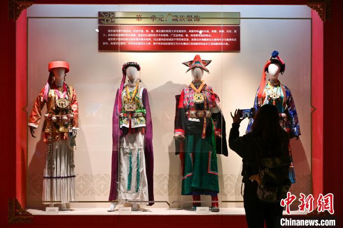 3月1日,迪慶藏族自治州博物館內(nèi)展出的藏族女性服飾吸引游客拍照。李嘉嫻 攝