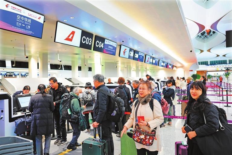 旅客在T3航站樓出港大廳柜臺(tái)窗口辦理值機(jī)。新甘肅·甘肅日報(bào)記者 田蹊