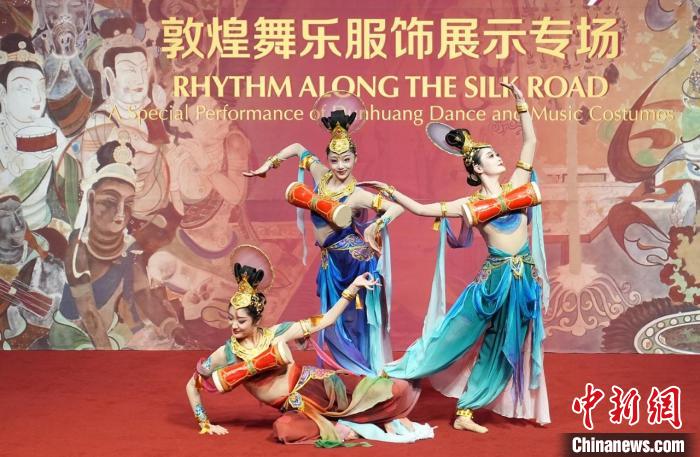 30日在中國(guó)美術(shù)館,“絲路歌韻:敦煌舞樂(lè)服飾展示專(zhuān)場(chǎng)”以歌舞與服飾展示相結(jié)合的形式,弘揚(yáng)絲綢之路文化。演出以敦煌壁畫(huà)為靈感,呈現(xiàn)《梵天》《剎那即永恒》《金剛》《羯鼓伎》《大夢(mèng)敦煌》等節(jié)目,融合舞蹈、音樂(lè)與服飾,展現(xiàn)敦煌藝術(shù)的精神內(nèi)涵。