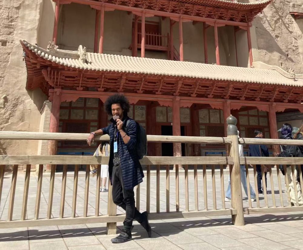扎克里·史密斯在敦煌莫高窟拍照留念。(受訪者供圖)