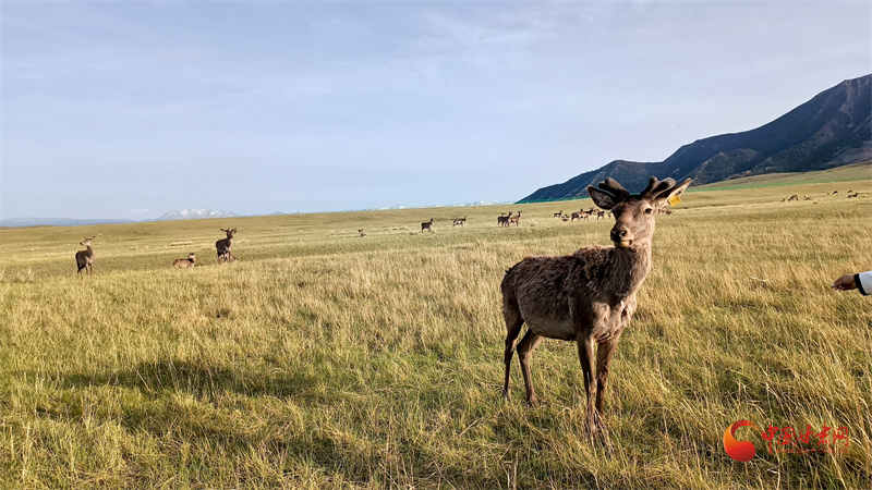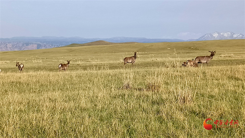 初夏的肅南大河草原牧草逐漸返青,一群群馬鹿在草原上悠閑覓食,游客到來(lái)并沒(méi)有打擾它們的正常活動(dòng)。