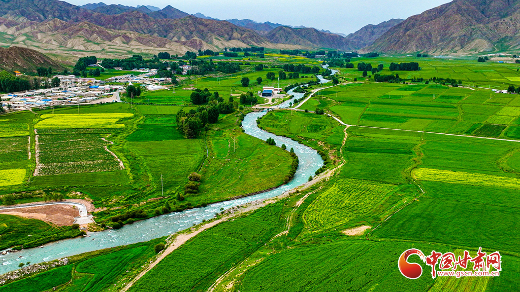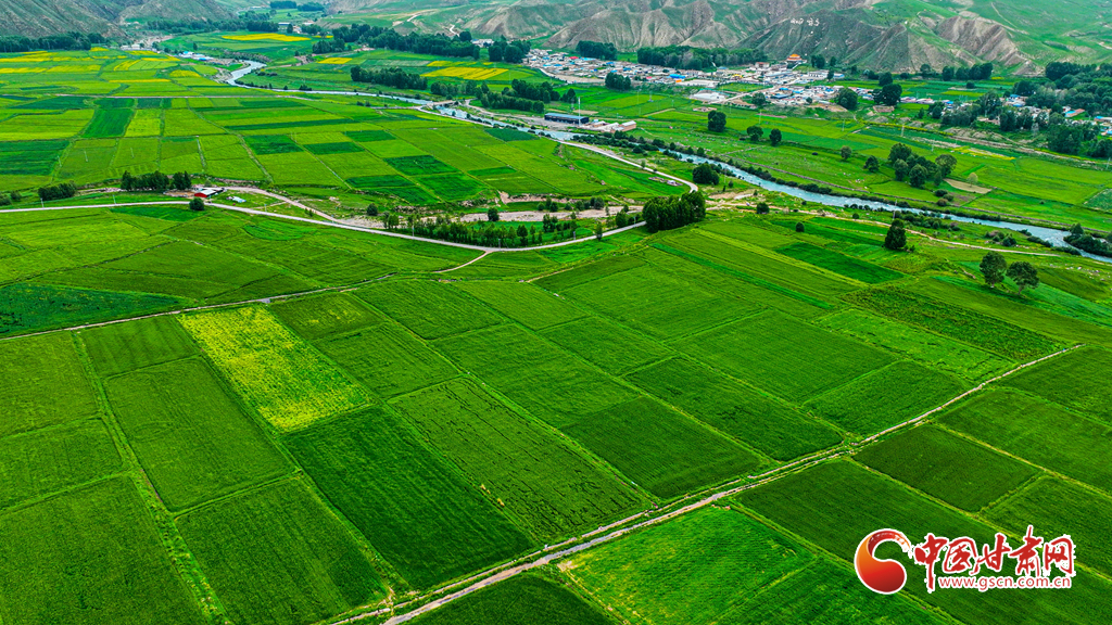 7月14日,一場(chǎng)小雨過后,張掖市肅南裕固族自治縣皇城鎮(zhèn)泱翔片區(qū),萬(wàn)畝麥田泛黃、油菜花盛開如金。微風(fēng)吹拂,麥浪翻涌花香浮動(dòng)。遠(yuǎn)眺祁連山巍峨聳立,近觀民居錯(cuò)落有致,構(gòu)成一幅和諧的畫卷。