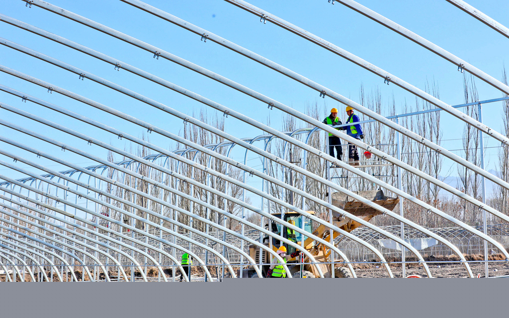 時值隆冬,張掖市高臺縣巷道鎮(zhèn)紅聯(lián)村設施蔬菜產(chǎn)業(yè)基地上,40座高標準鋼架棉簾大棚正在加緊施工。工程建設者們不畏嚴寒,忙碌地進行日光溫室棚體的焊接與固定,同時安裝水肥一體化設備、卷簾機、自動通風系統(tǒng)等配套設施,全力確保超過24000平方米的高標準溫室在年底前順利竣工。該項目將為冬春季蔬菜種植打下堅實基礎,進一步助力群眾增收。