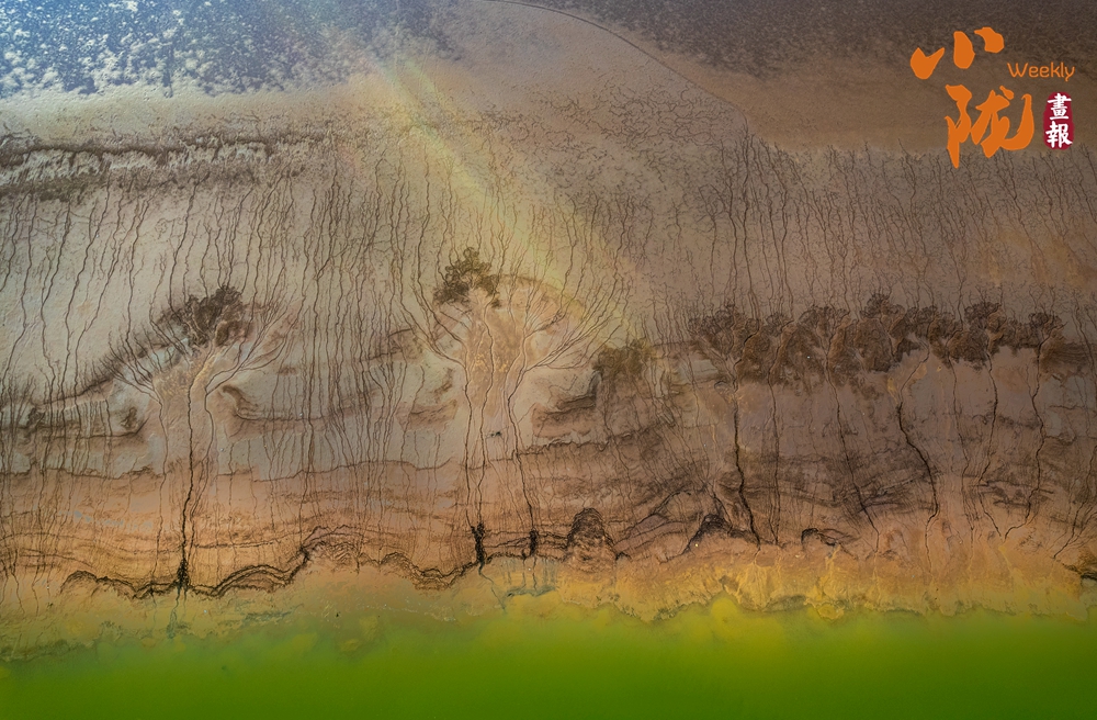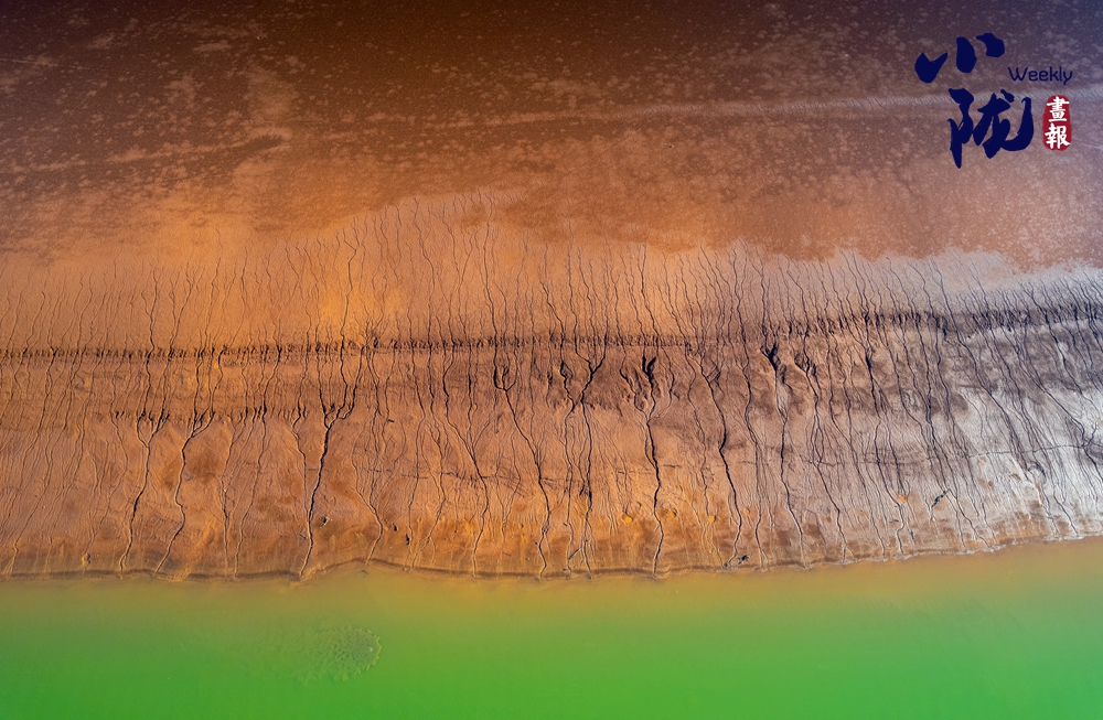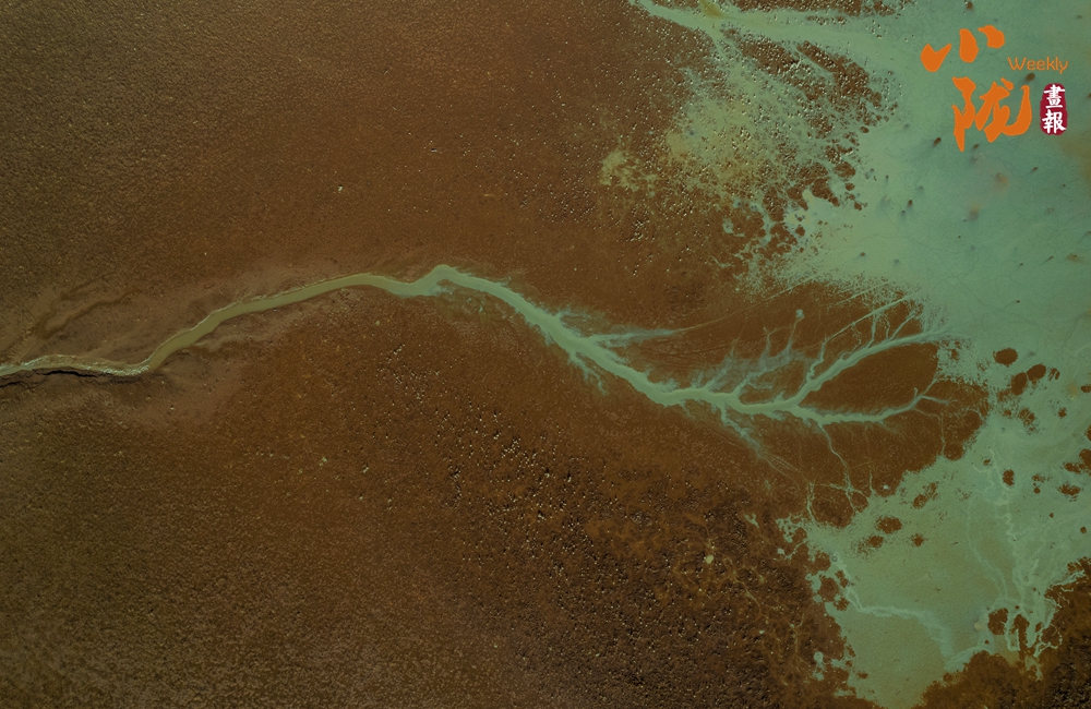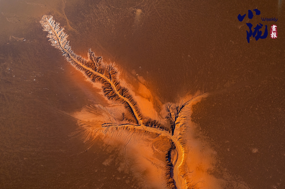 干燥的泥表交錯(cuò)分布、由主到次不斷分岔,形成如老樹虬根般蜿蜒伸展的圖案。那細(xì)膩而連貫的線條,猶如大自然親手繪制的一幅“根系地圖”,記錄著水分消退的足跡。