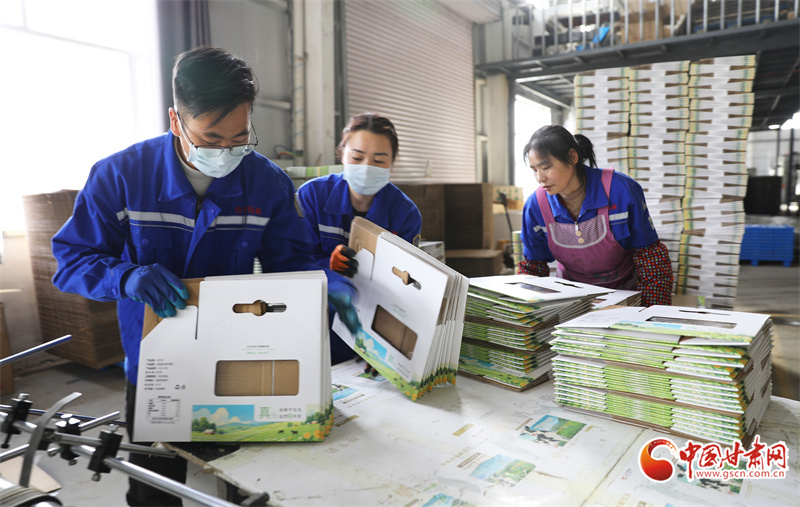 時下,在位于民樂工業(yè)園區(qū)的一家生產(chǎn)車間內(nèi),工人們正緊張有序地進行包裝盒裝配、成型作業(yè)。