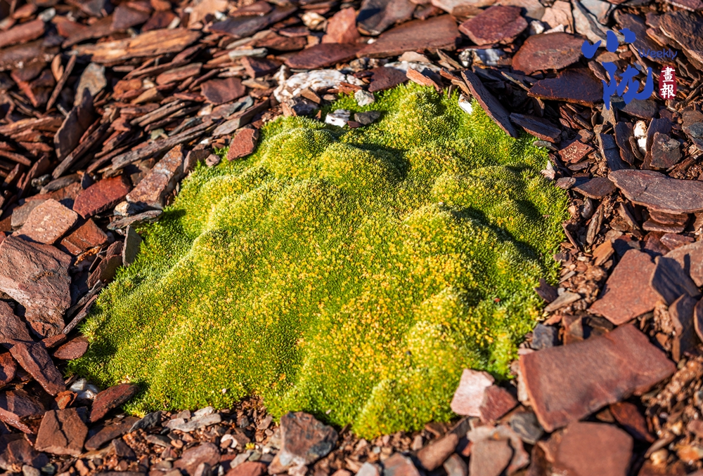 抱莖葶藶,屬于十字花科葶藶屬的墊狀高山植物。它呈緊湊的團塊狀,葉片密集,表面覆有白色絨毛,頂端開有細碎的黃色小花,生長在碎石環(huán)境中,這種形態(tài)能幫助它適應(yīng)高海拔的低溫、強風(fēng)與強紫外線環(huán)境,減少水分流失。