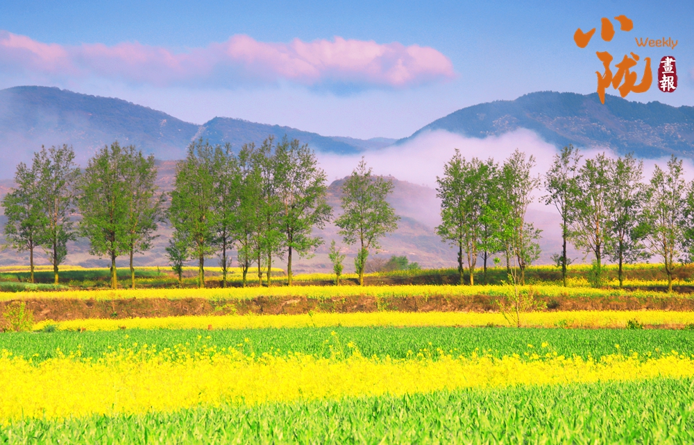 澄澈的藍天銜著粉紫流云,眼前是望不到頭的油菜花田,明黃的花浪在風(fēng)里翻涌,田埂邊的樹木抽出嫩綠新芽,春日的鮮活與靈動,全在這山野間漾開。