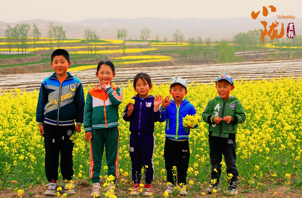 田埂上,幾個孩童笑鬧著,衣衫上的亮色和花田相映,他們捧著剛摘的花簇,把春日的鮮活與童真,都揉進了這滿野的春光里。